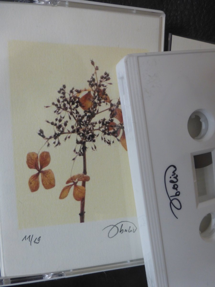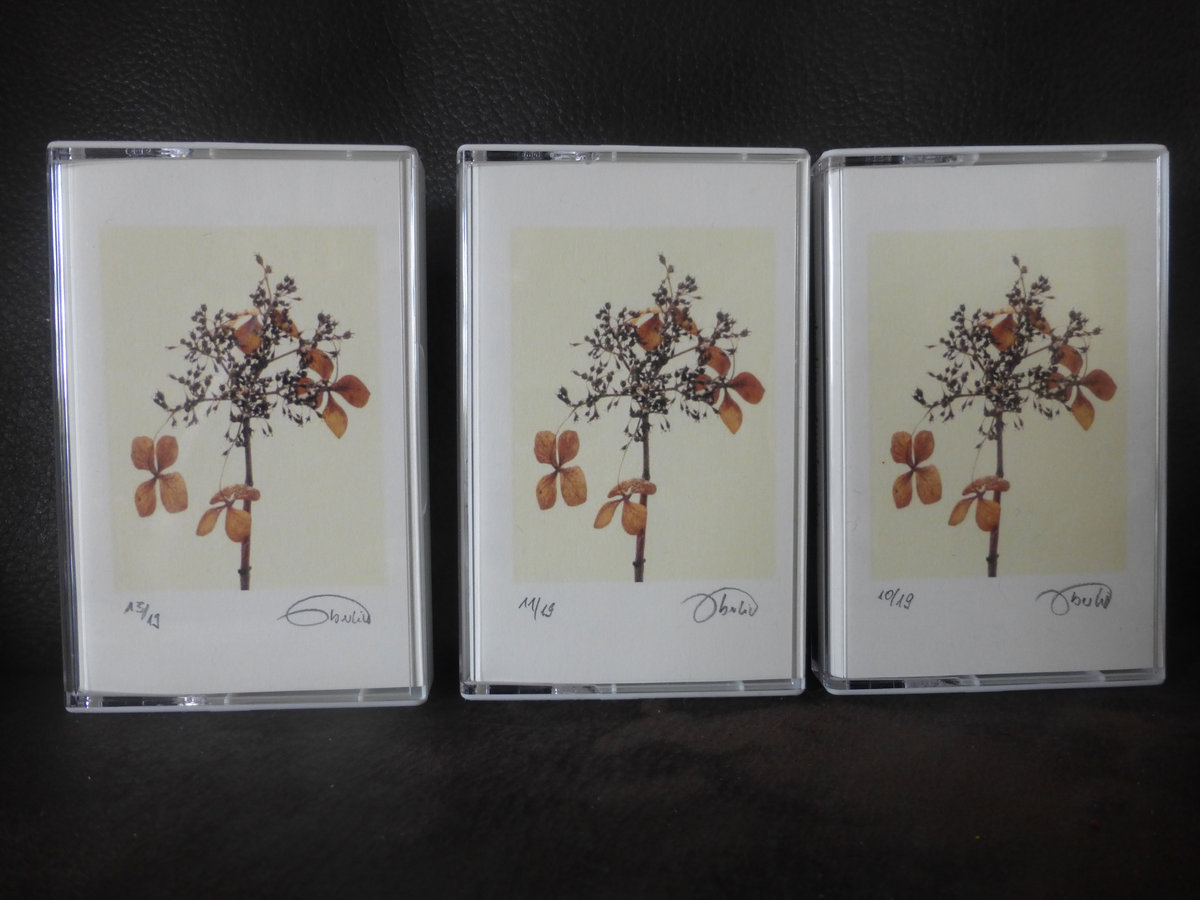 Edition of 19 white c-30-ferro-cassettes in white boxes with coloured print, handnumbered and signed. The tapes are handdubbed in real time on a Technics RS TR 373.